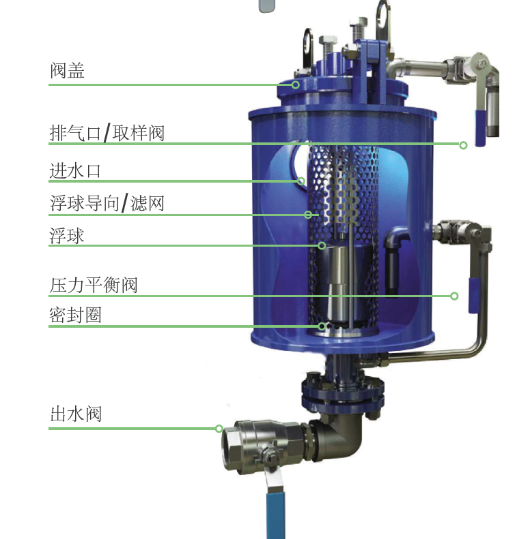 油水之前有着明确的分界线,当排水结束、油品进入TOO阀时,浮球会执行动作将排水通道关闭,防止油品外溢到环境中。如果安装了限位开关选配件,远程位置监测系统即会收到表示阀门已经关闭的信号。
