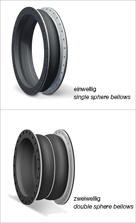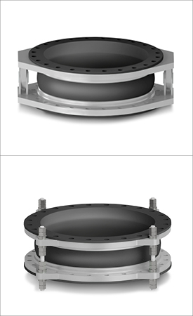 波形补偿元件表面为橡胶,内层为数层强力纤维或钢带(丝)加强的夹层。加强纤维或钢带(丝)等加强夹层一直延伸到两端的像胶凸缘,凸缘内有硬钢丝骨架。像胶膨胀节有具有较大位移补偿能力,可进行轴向、横向和角向位移的补偿,有降低噪音、减少震动和一定的防腐能力。其耐压高、弹性好、位移量大、吸振降噪效果好、安装方便等特点,可广泛用于给水排水,暖通空调、消防、压缩机、造纸、制药、船舶、水泵、风机等管道系统。